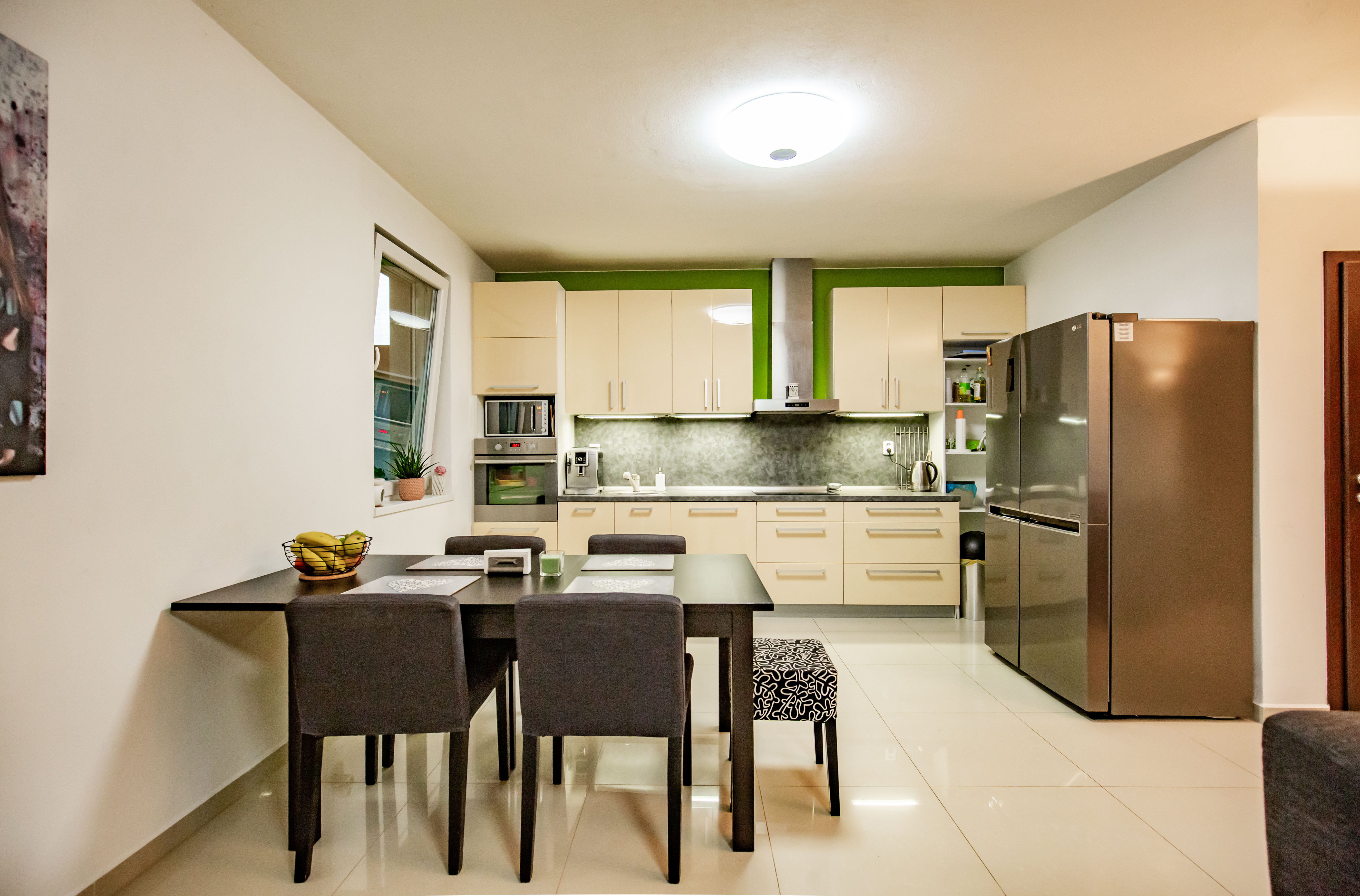 prchovacím kútom a WC, technická miestnosť pre kondenzačný plynový kotol, komora, kuchyňa s kuchynskou linkou na mieru so zabudovanými spotrebičmi prepojená s obývacou izbou s výstupom na krytú terasu o výmere 15 m2,