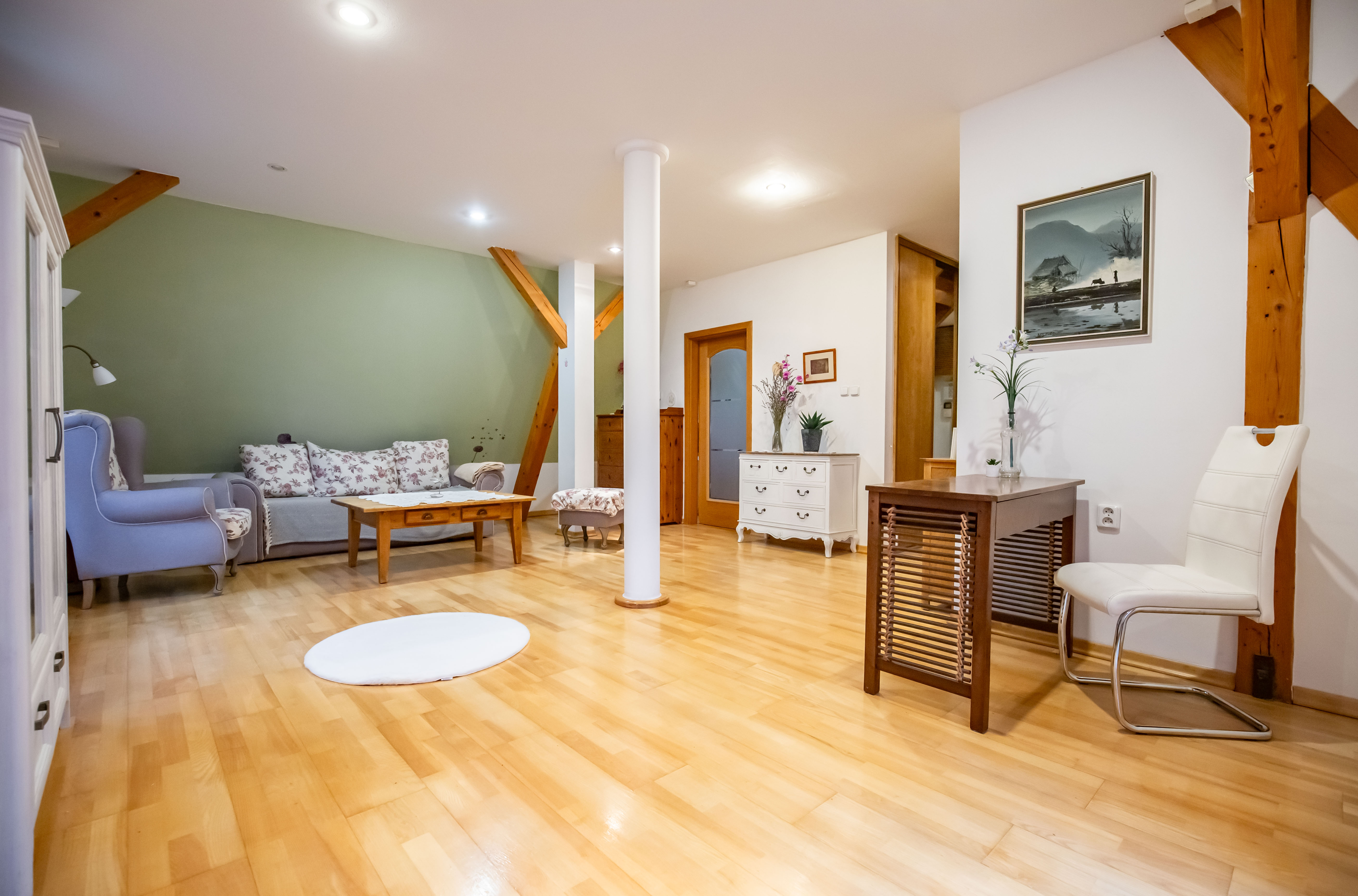 Ponúkame Vám na predaj krásny 4-izb. mezonetový byt o výmere 116 m2, byt sa rozprestiera na treťom a štvrtom podlaží v Cukrovarskej vile na Hospodárskej ul. v Trnave.