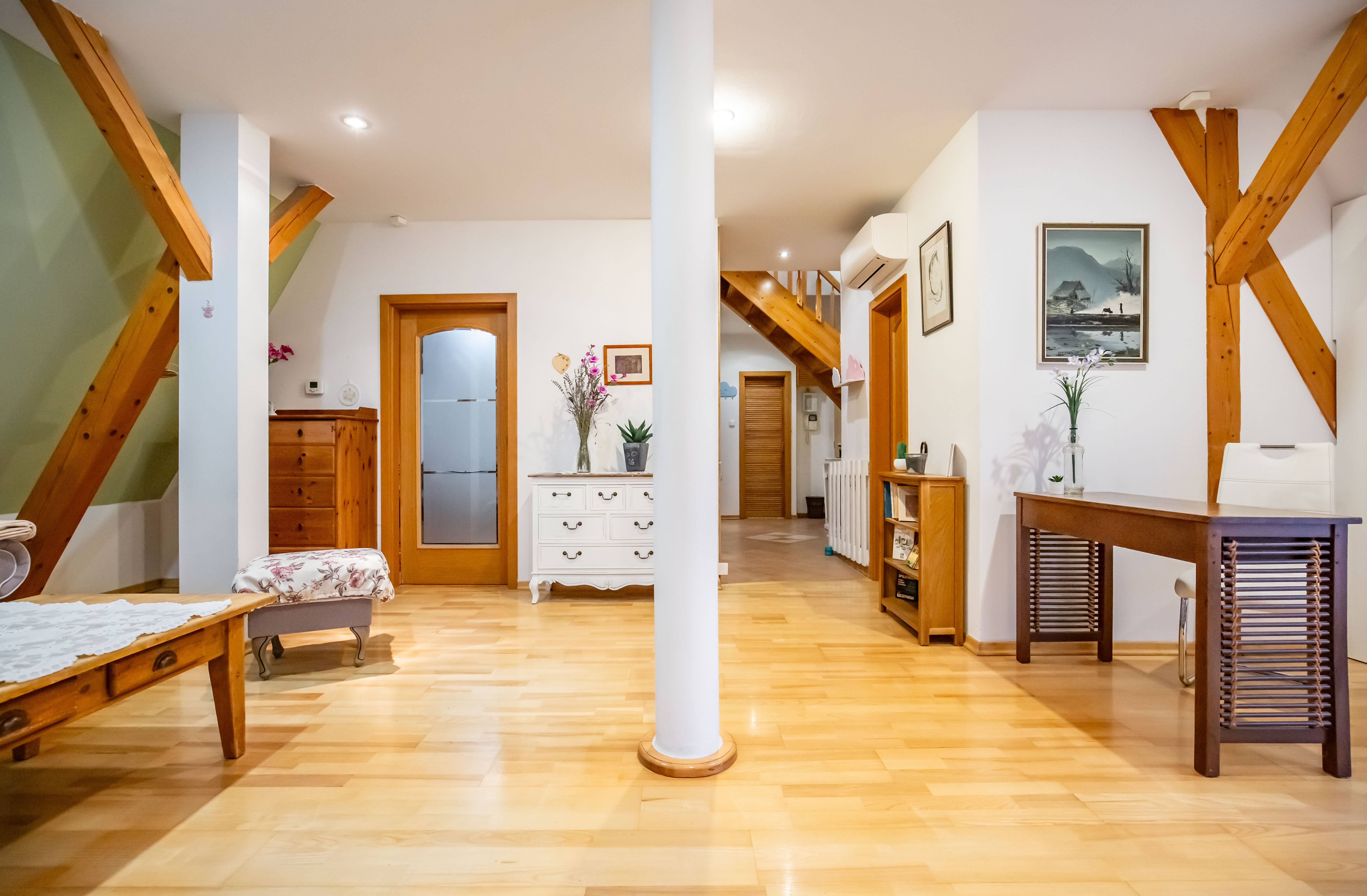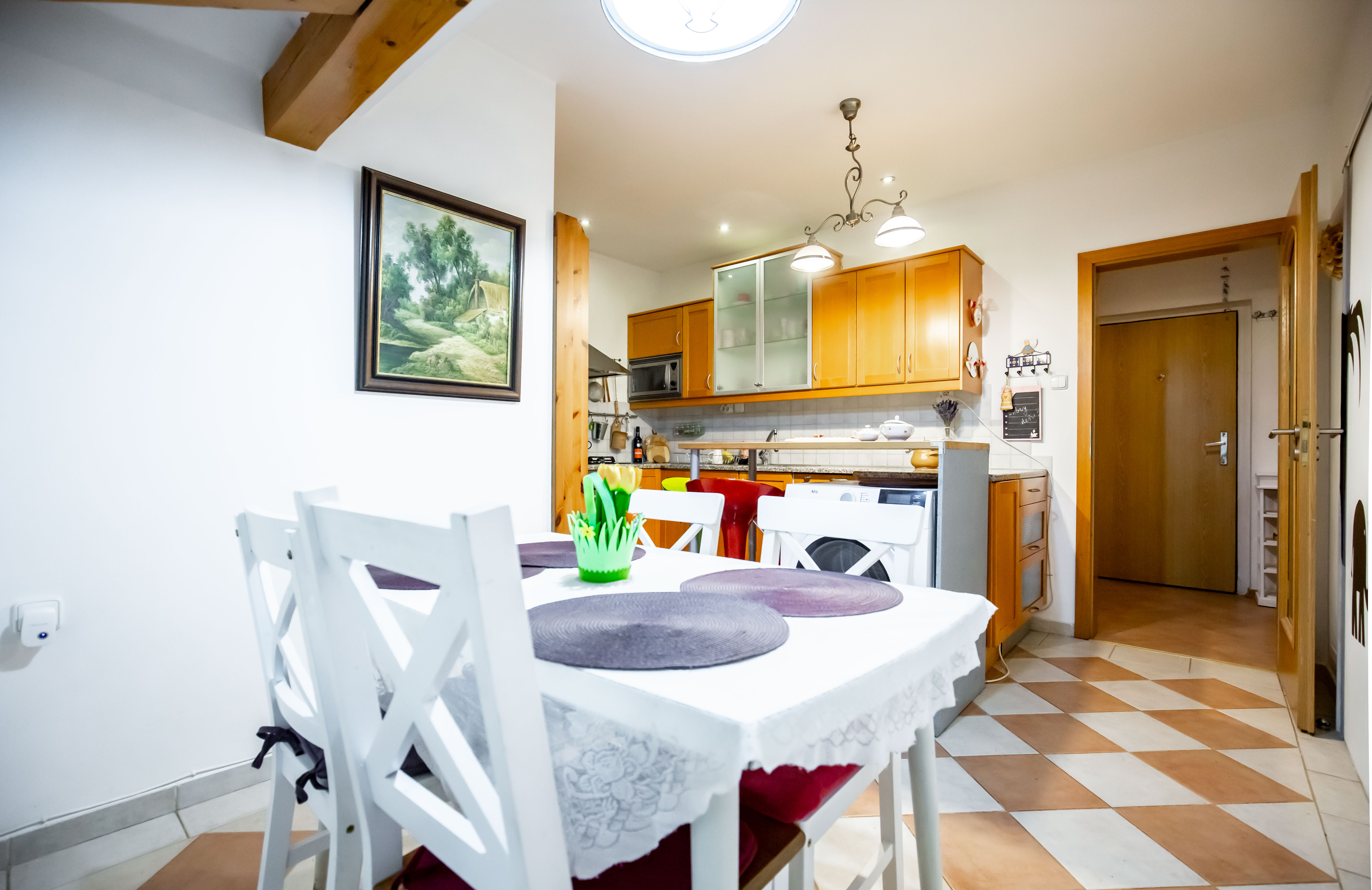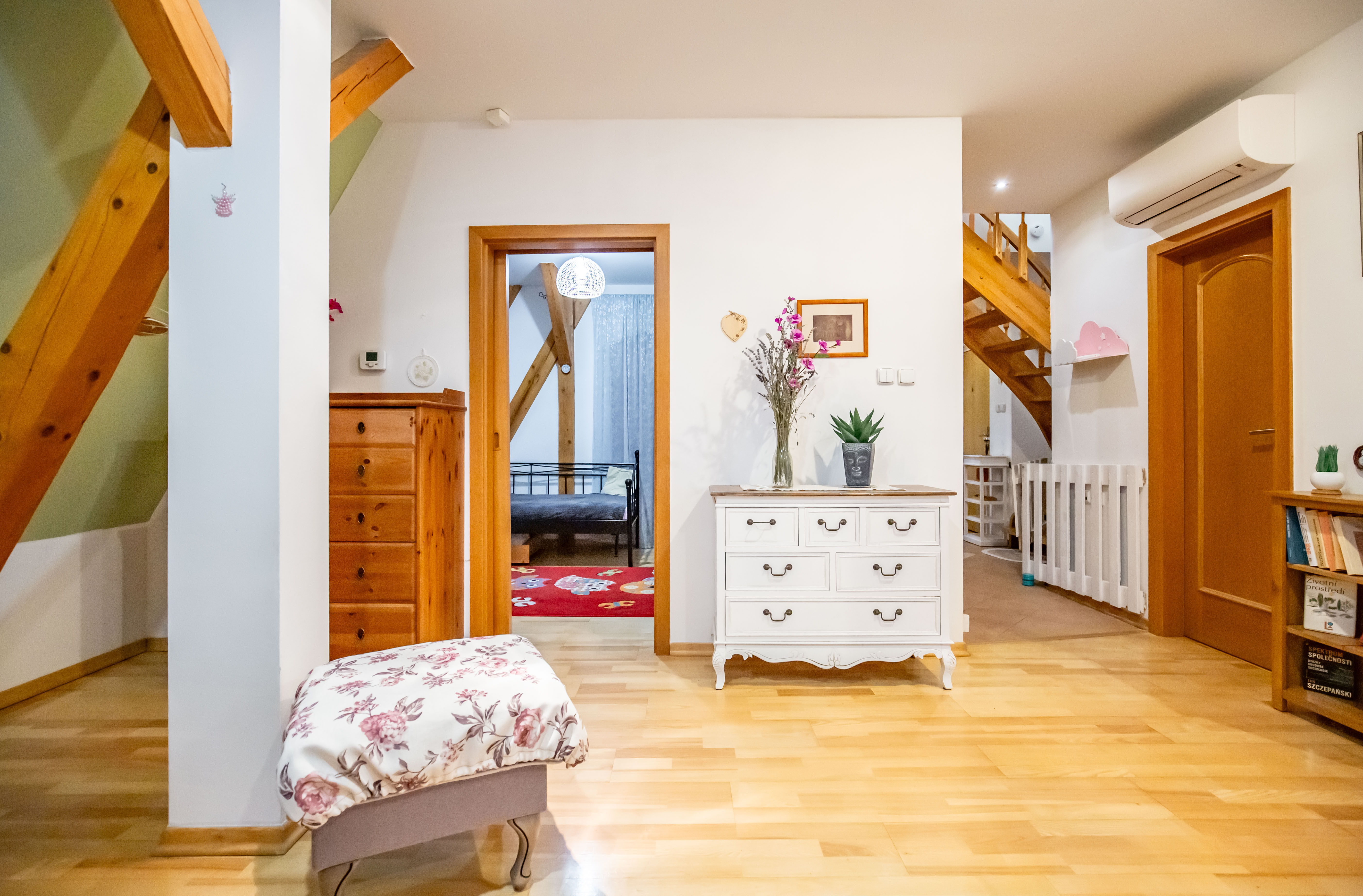 V byte sú eurookná a strešné okná s vnútornými zatemňujúcimi tienidlami, kvalitná drevená podlaha v izbách, dlažba na chodbe a v kuchyni, kuchynská linka so zabudovanými spotrebičmi, interiérové drevené zárubne a dvere, kúrenie prostredníctvom radiátorov napojených na vlastný plynový kotol, vlastný ohrev vody, 2 klimatizačné jednotky Daikin.