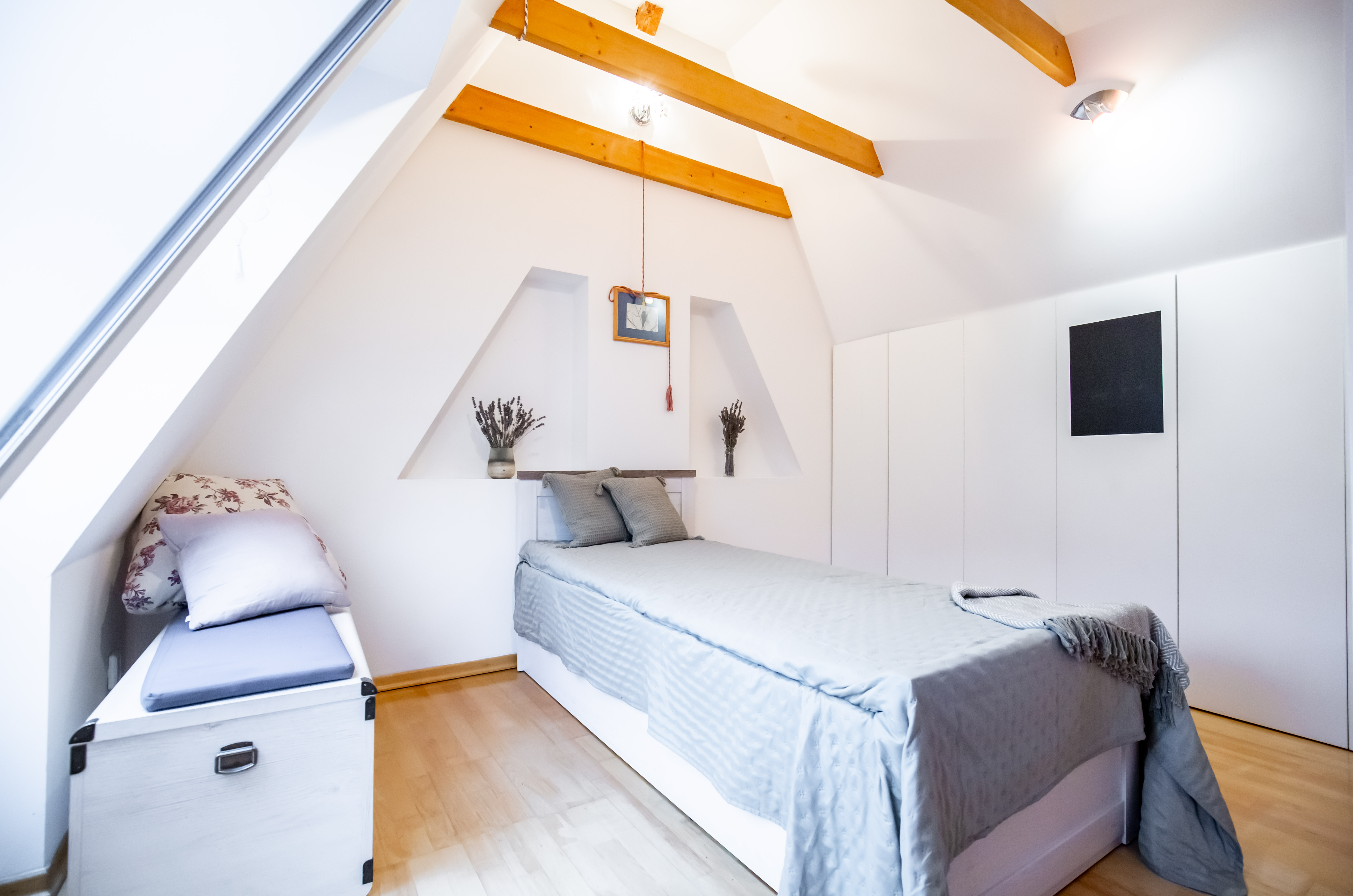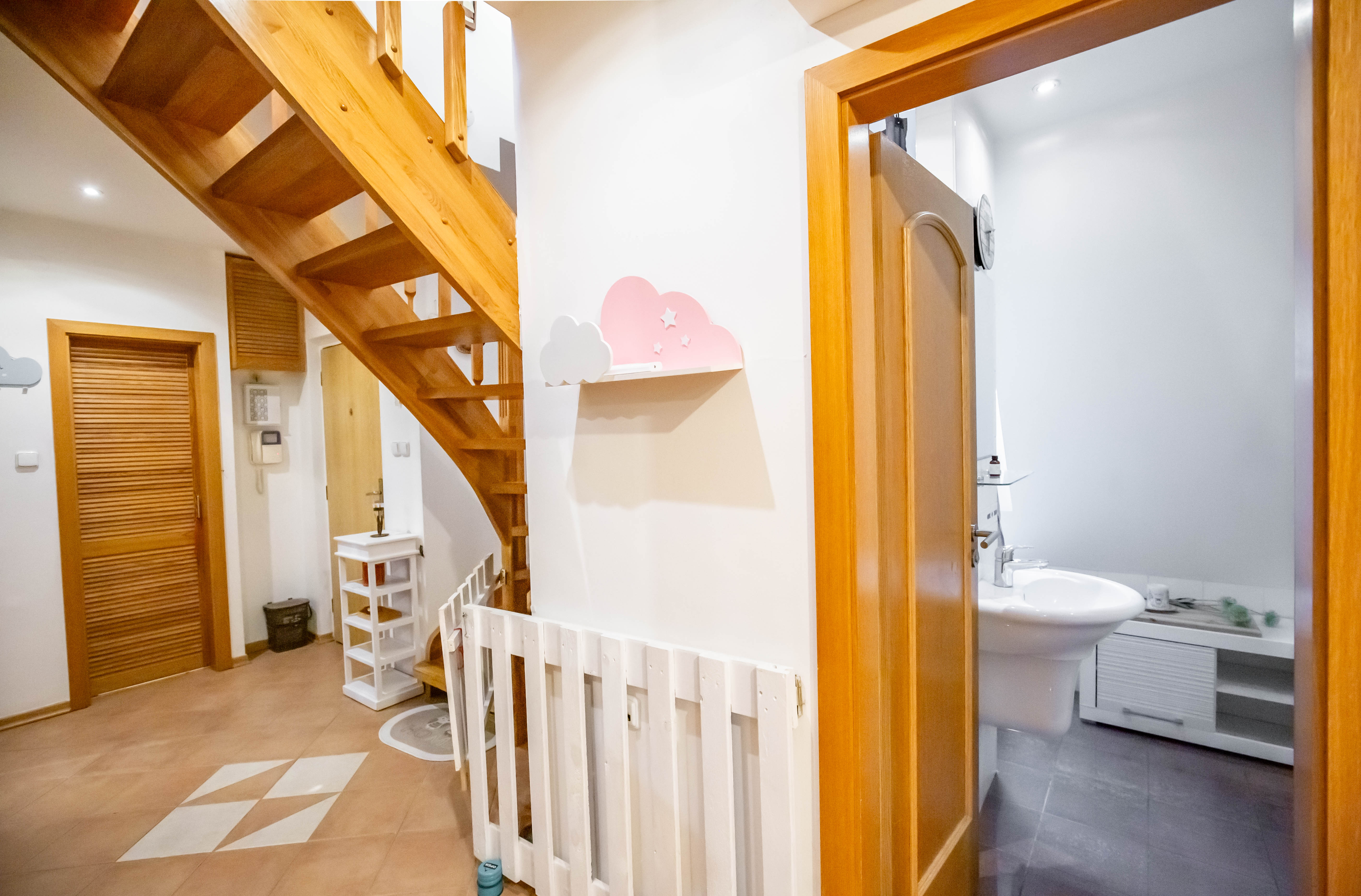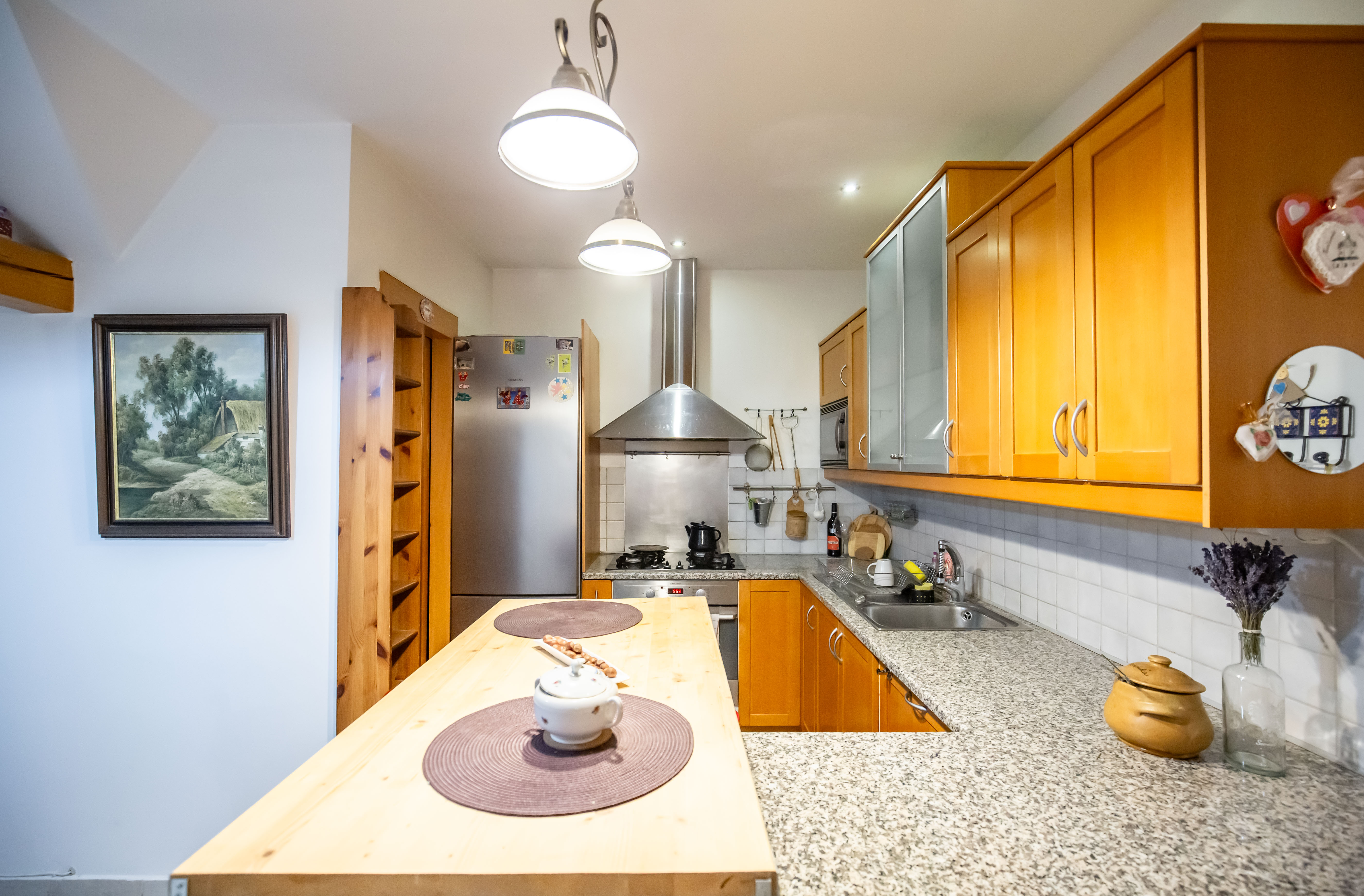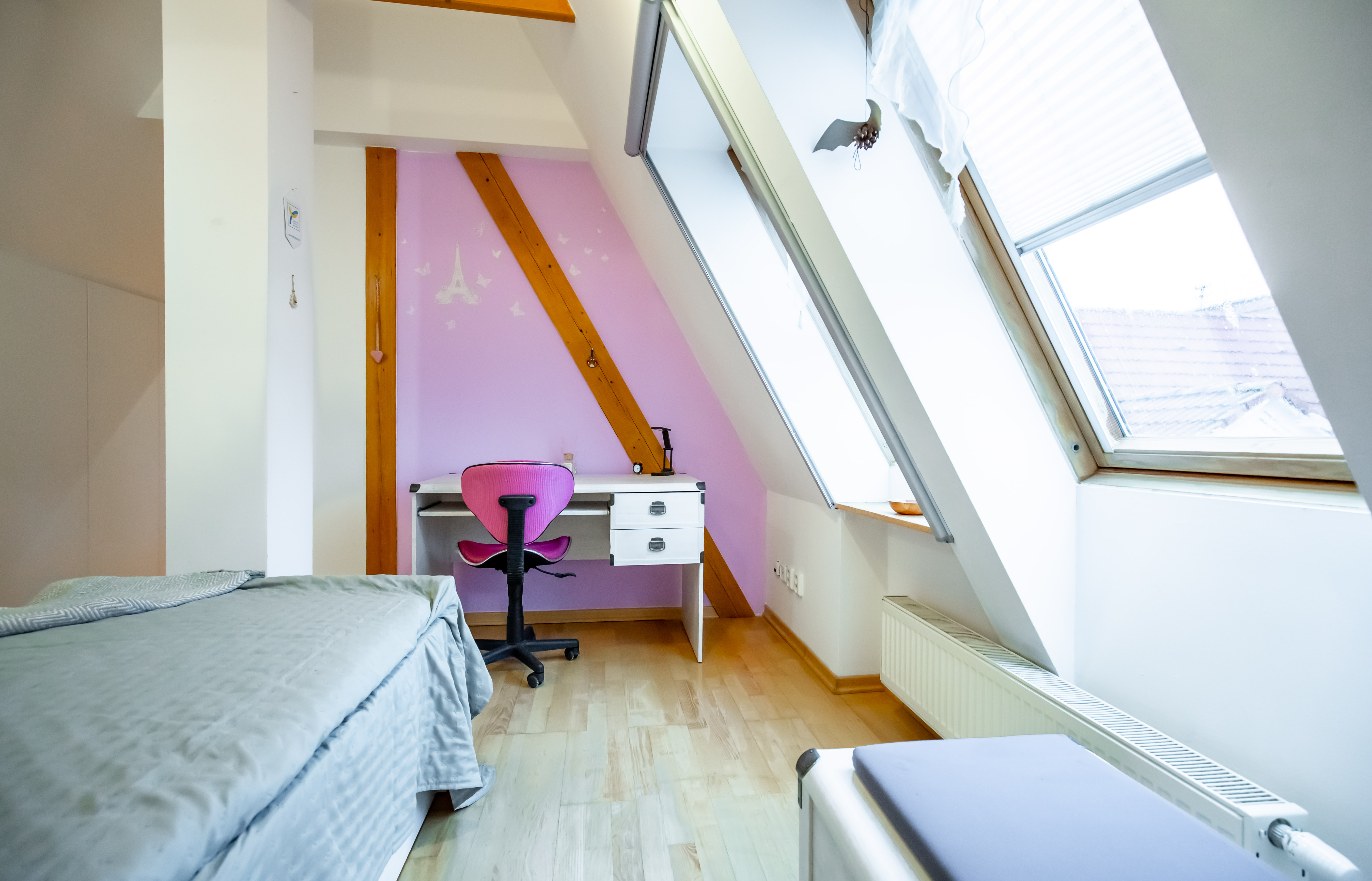 V byte sú eurookná a strešné okná s vnútornými zatemňujúcimi tienidlami, kvalitná drevená podlaha v izbách, dlažba na chodbe a v kuchyni, kuchynská linka so zabudovanými spotrebičmi, interiérové drevené zárubne a dvere, kúrenie prostredníctvom radiátorov napojených na vlastný plynový kotol, vlastný ohrev vody, 2 klimatizačné jednotky Daikin.