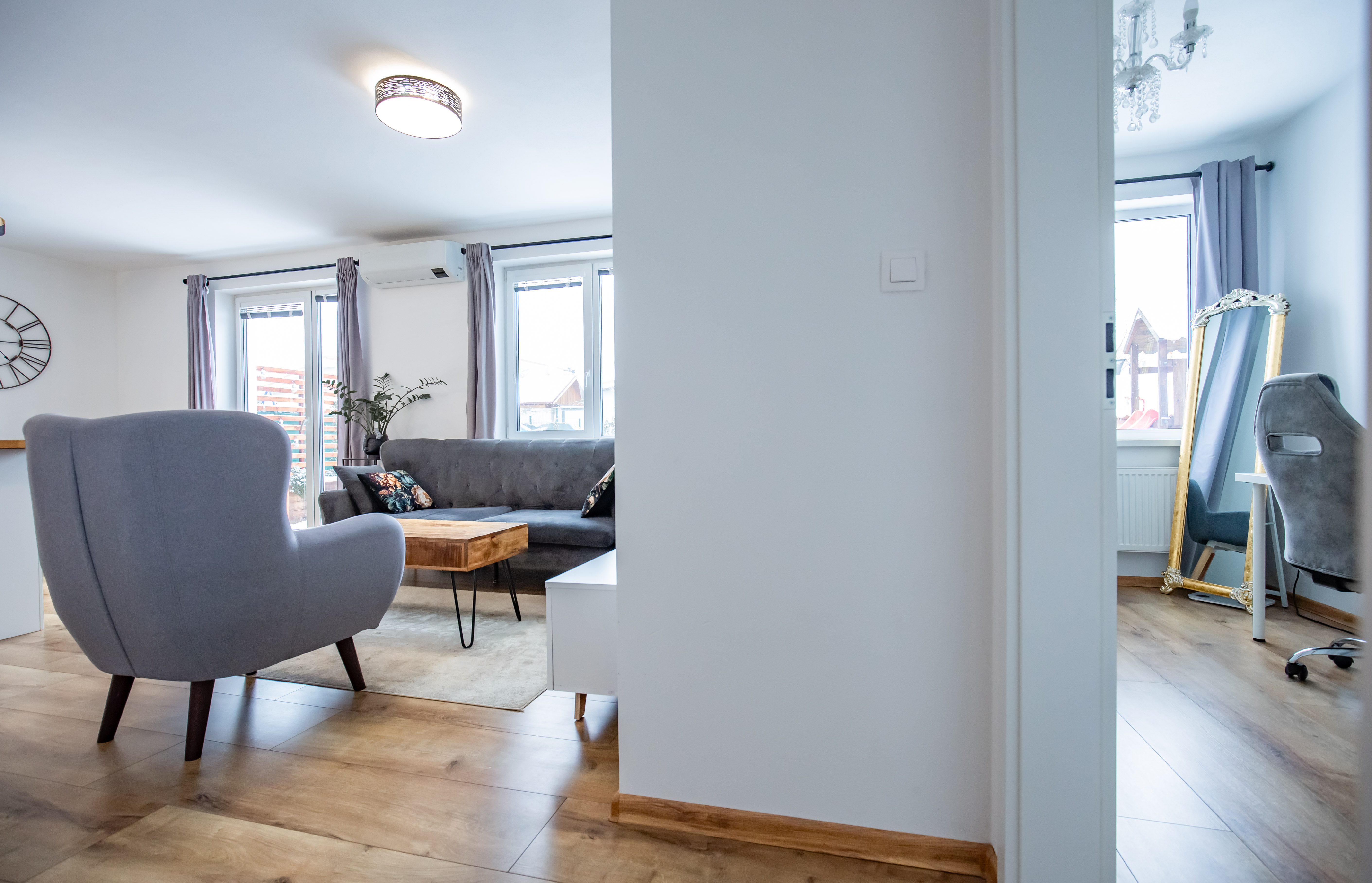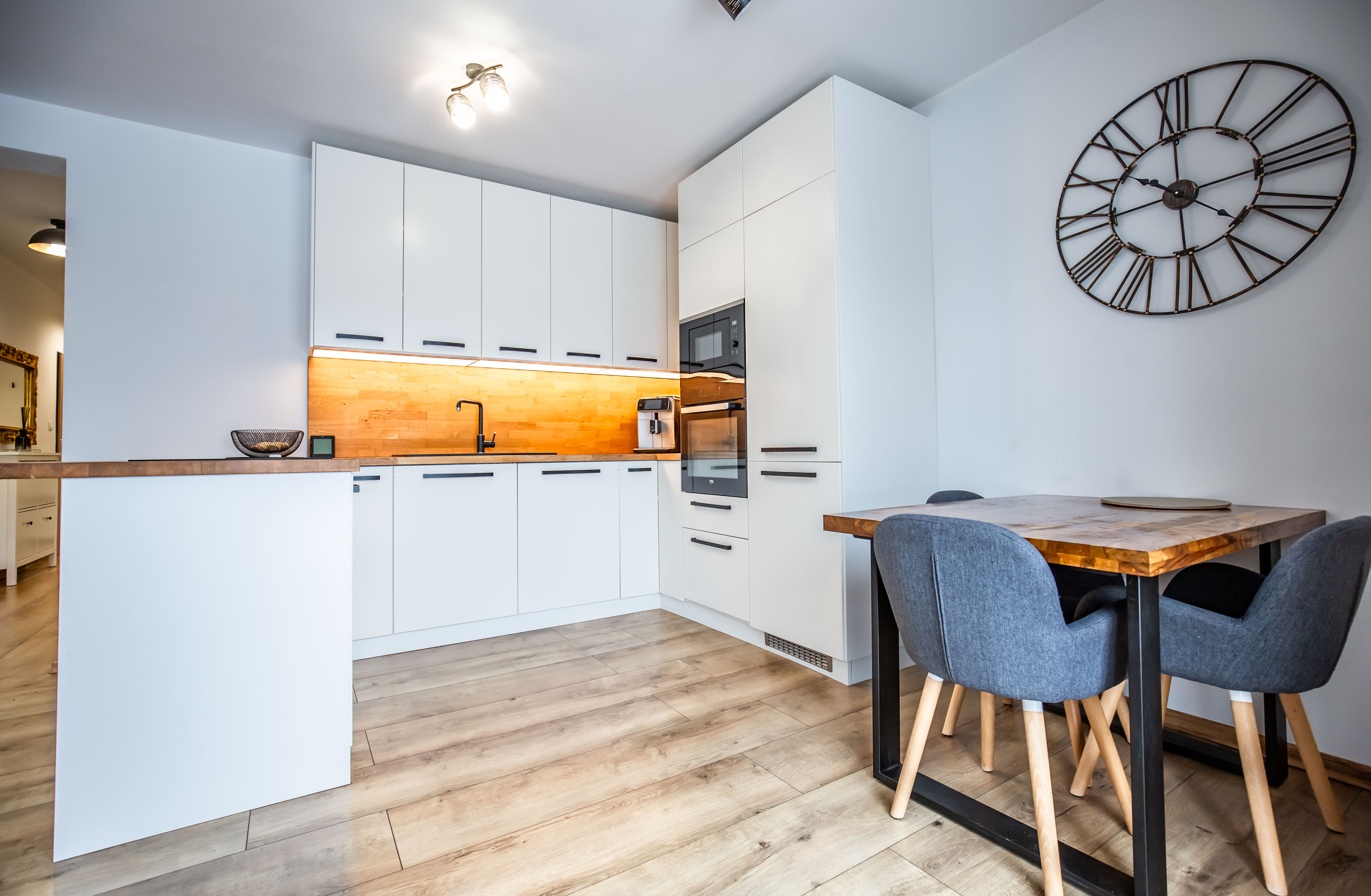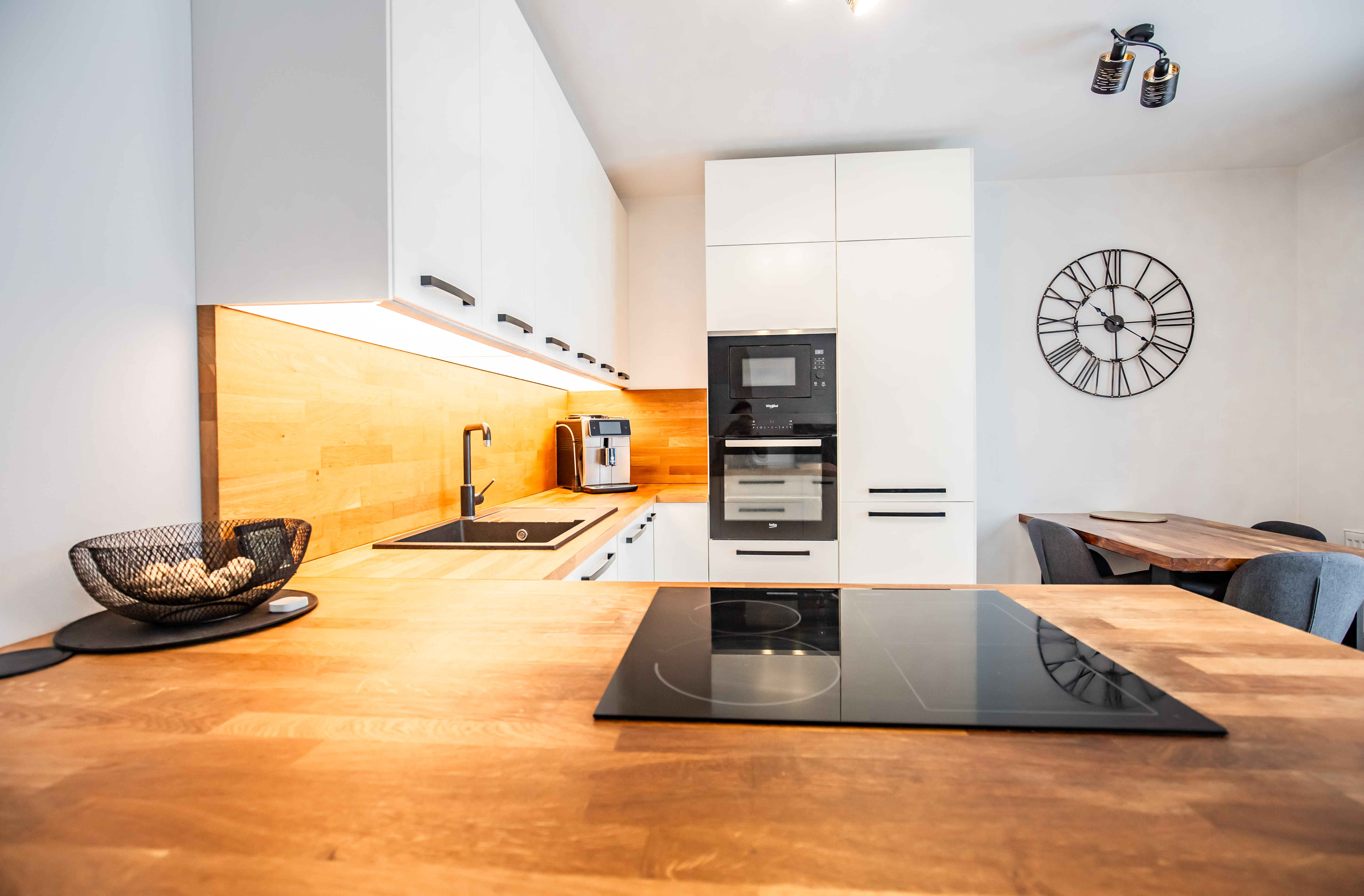 V celom byte sú plastové okná so žalúziami a sieťkami proti hmyzu, v detskej izbe a v spálni sú vonkajšie hliníkové žalúzie, plávajúca podlaha, kuchynská linka robená na mieru so zabudovanými spotrebičmi (indukčná varná doska, elektrická rúra, umývačka riadu, chladnička s mrazničkou, mikrovlnná rúra), interiérové dvere a zárubne, klimatizácia v obývačke, protipožiarne vchodové dvere. Kúrenie a ohrev teplej vody je zabezpečený spoločným plynovým kondenzačným kotlom nachádzajúcim sa na hornom poschodí v technickej miestnosti. Byt sa predáva čiastočne zariadený po dohode.