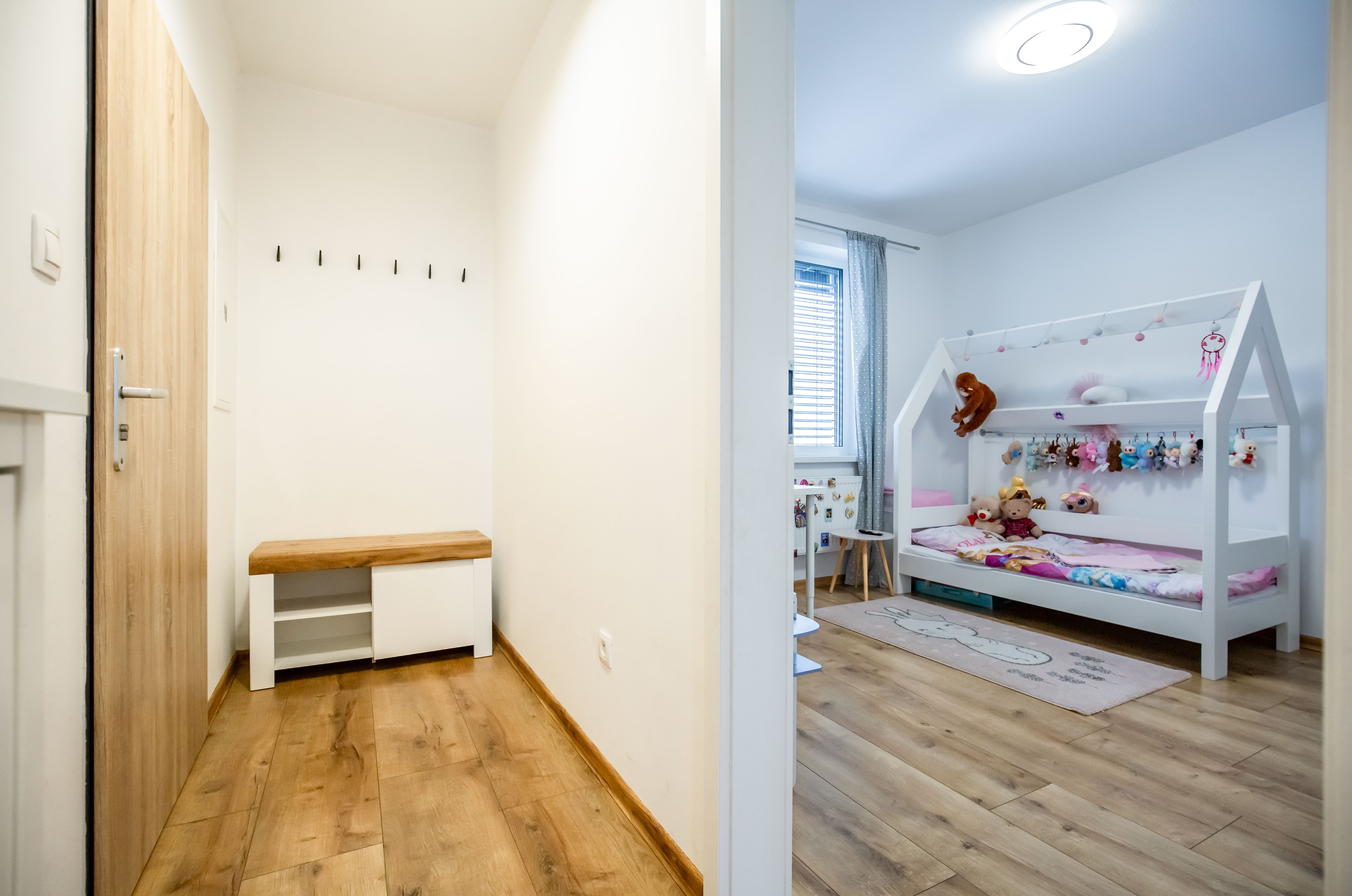 Byt pozostáva zo vstupnej chodby, detskej izby, kúpeľne so