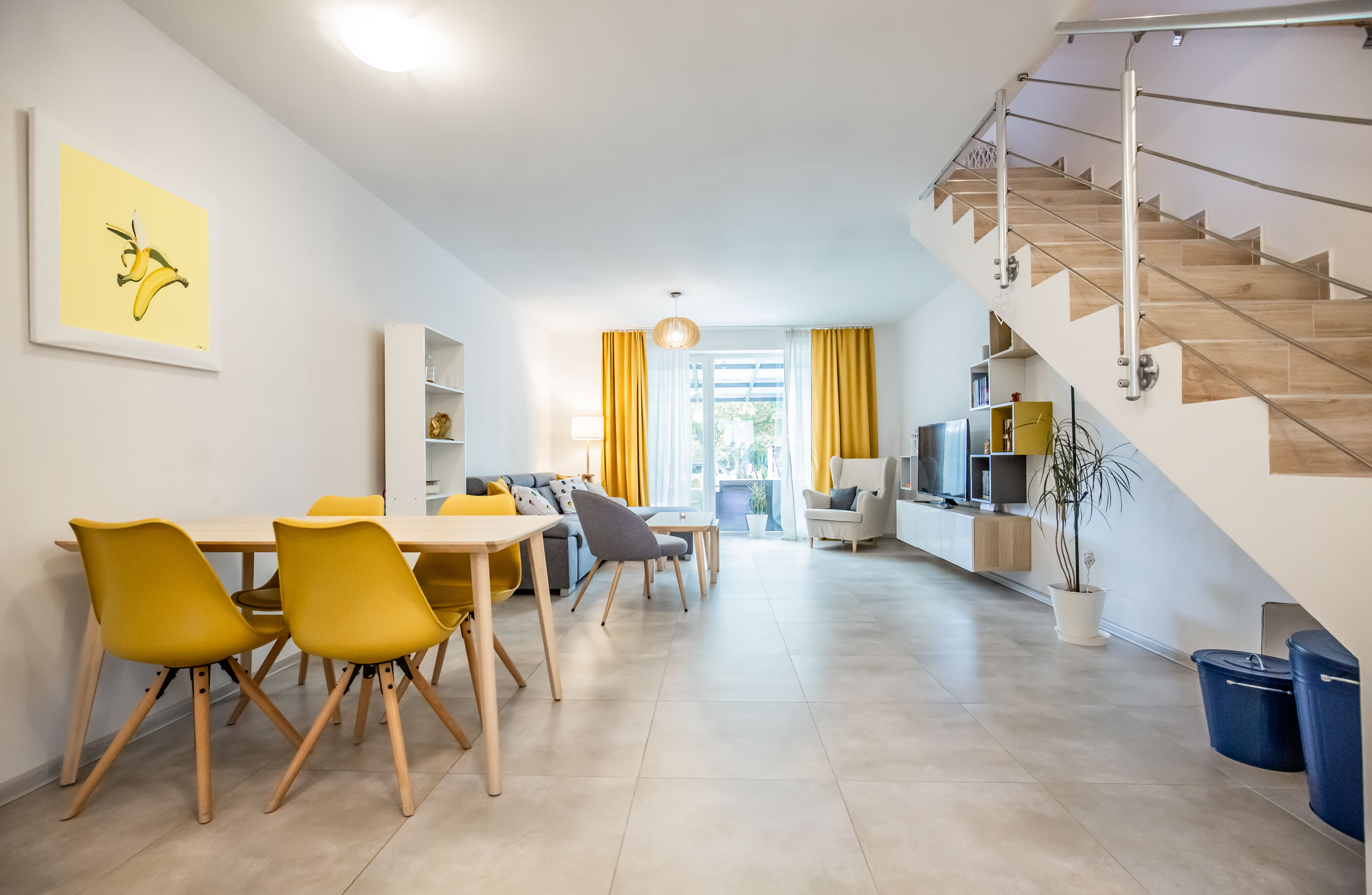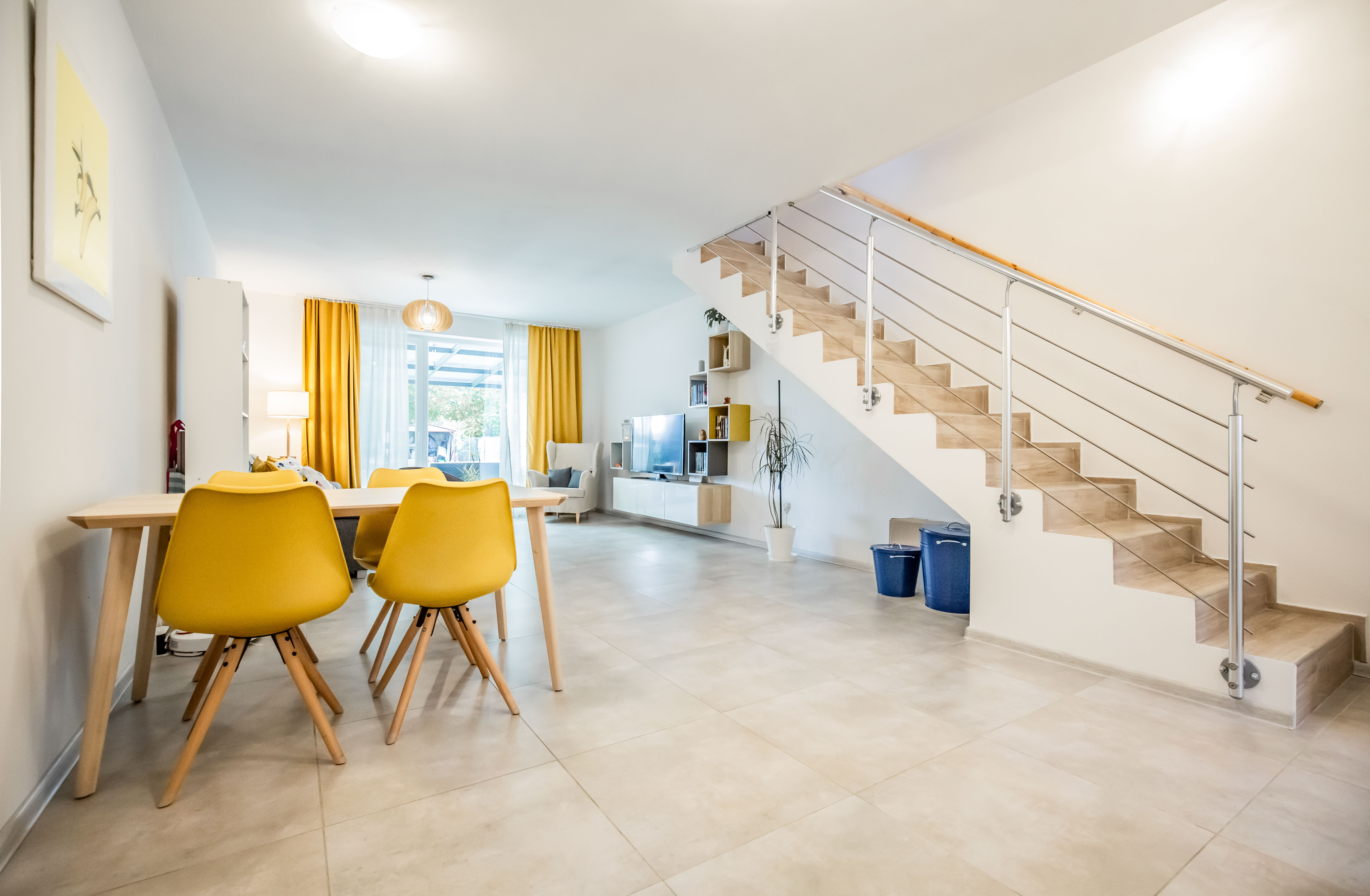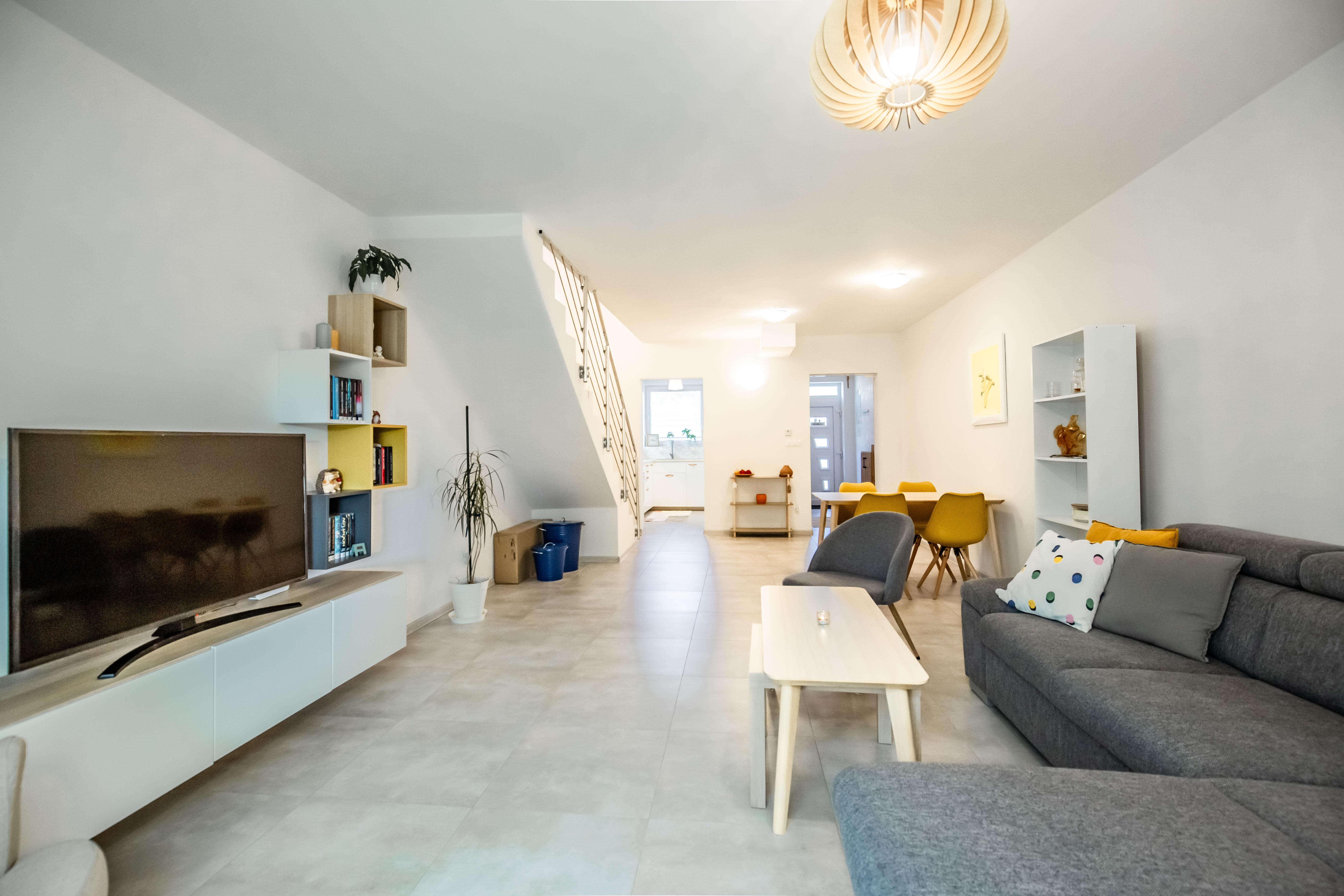 ... mie - vstupná chodba, WC, obývacia izba, kuchyňa, schodisko, krytá terasa,