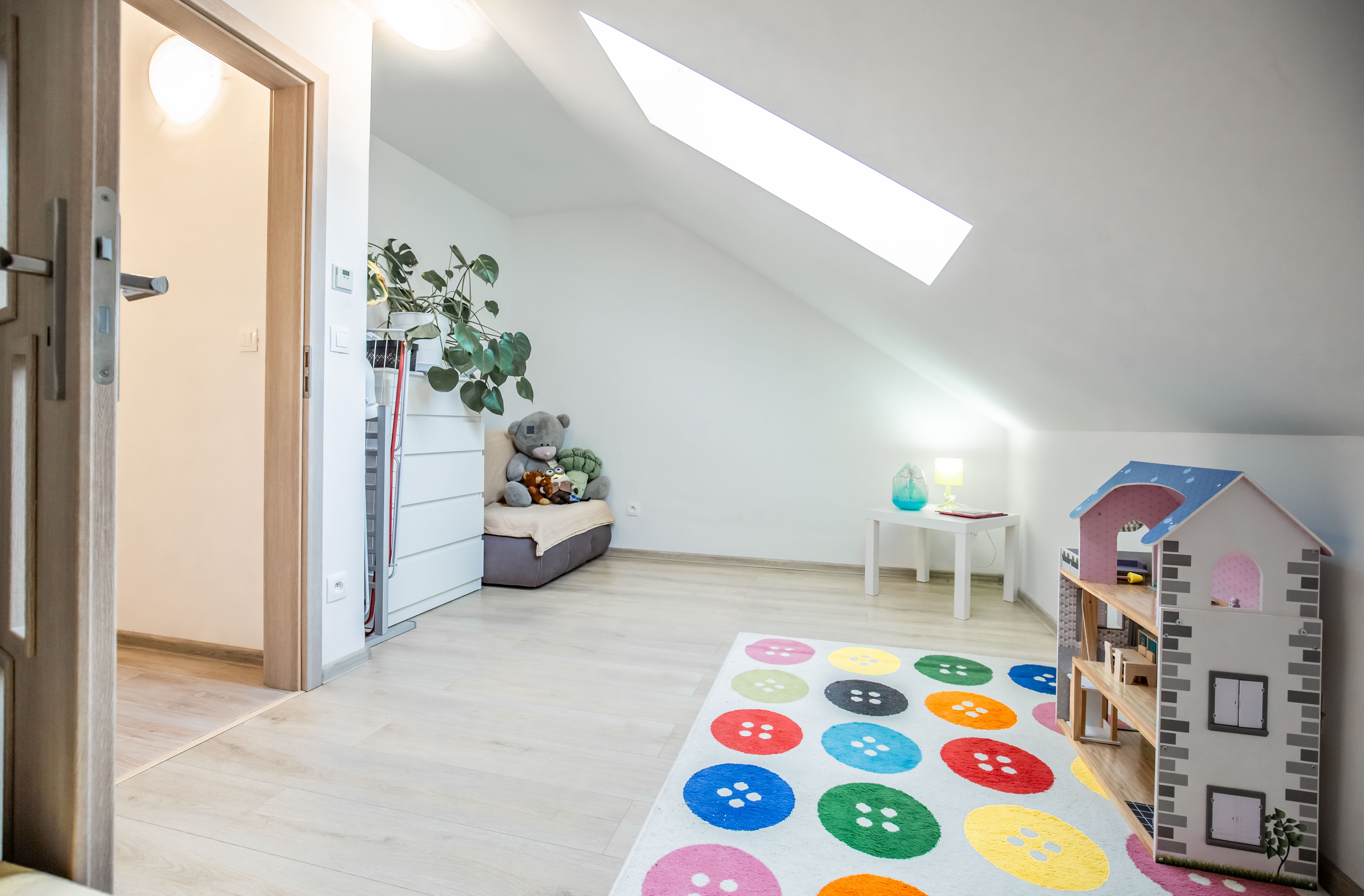 1.podlažie - chodba, detská izba, priestranná kúpeľňa s WC a spálňa .