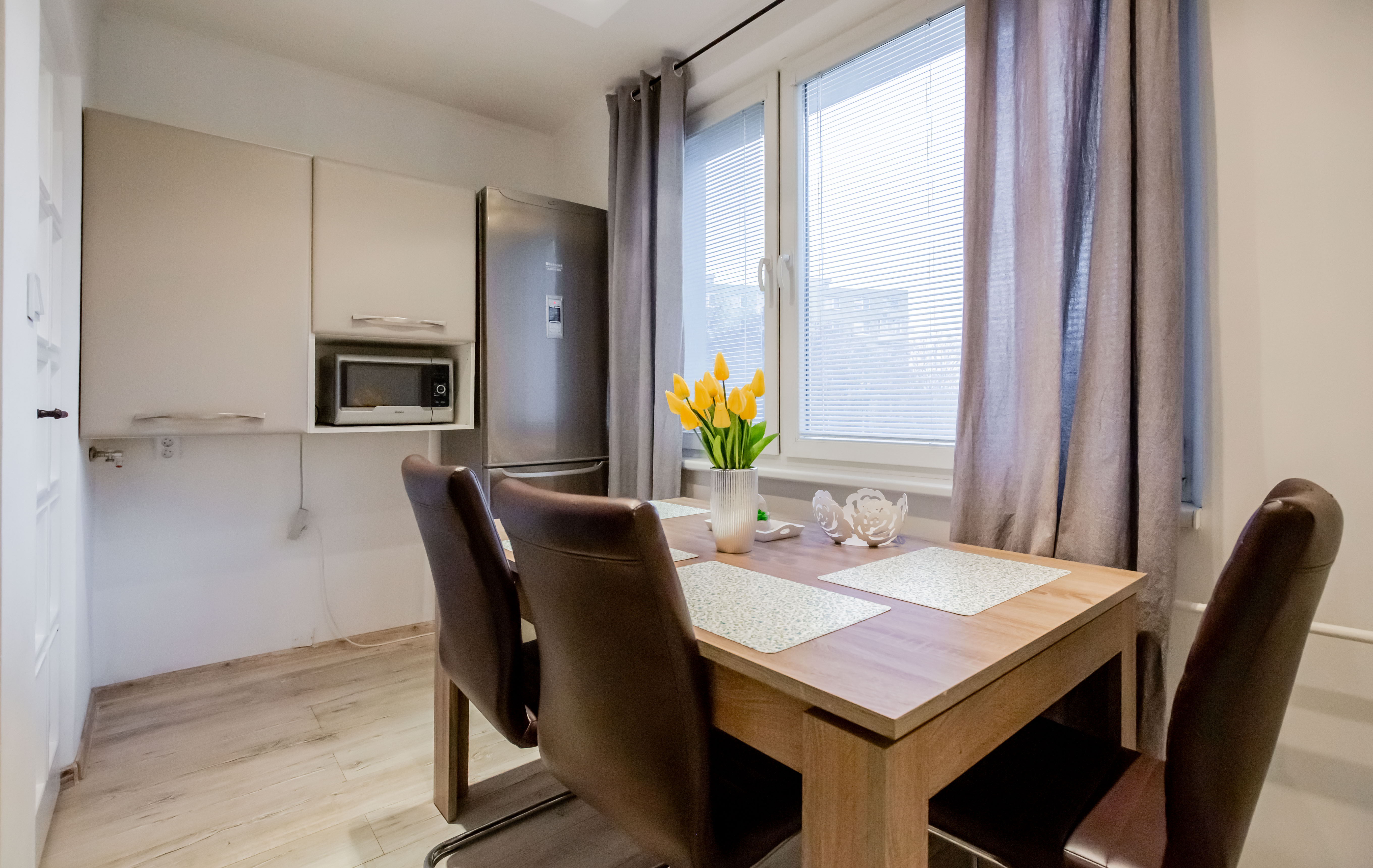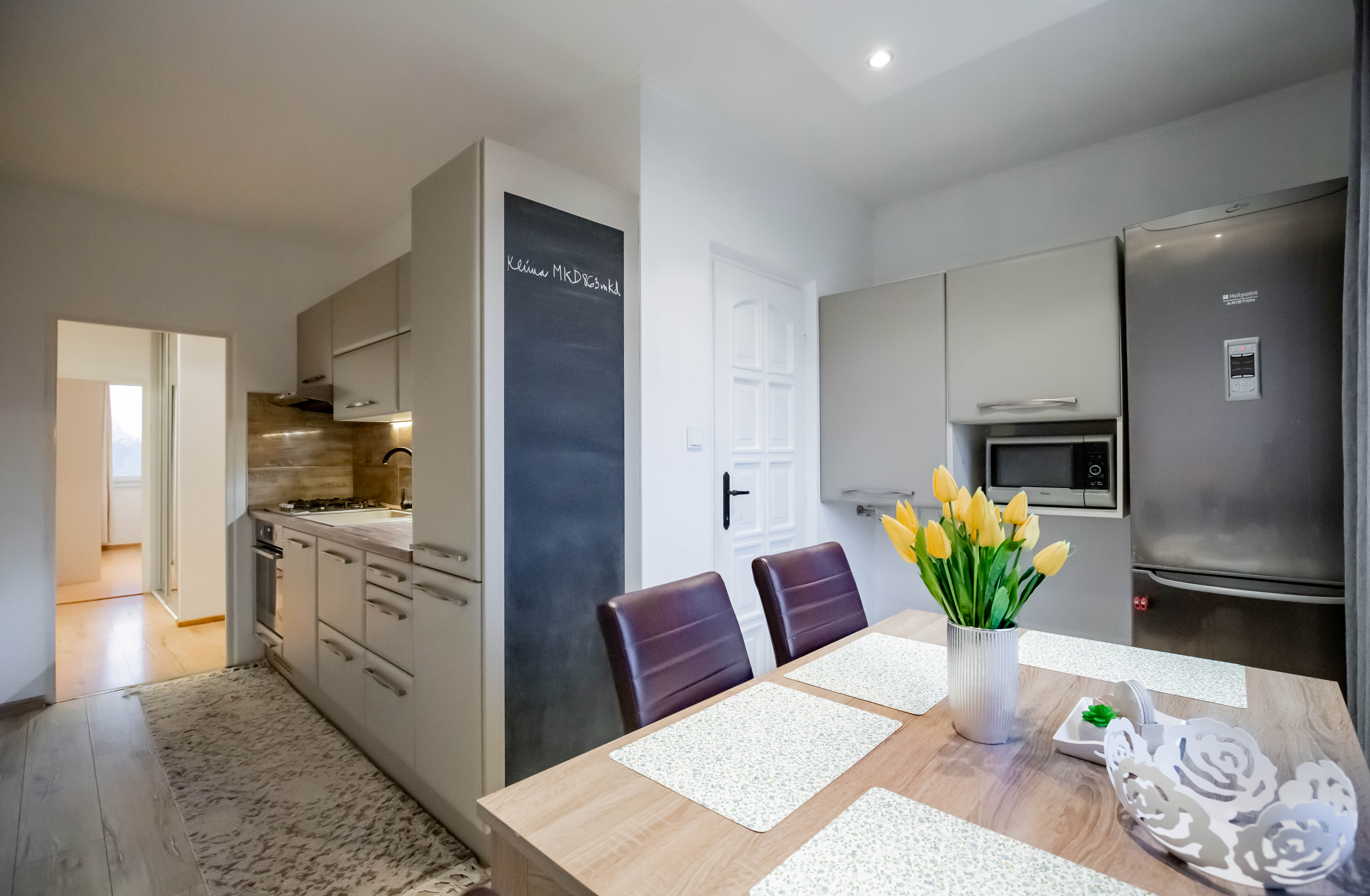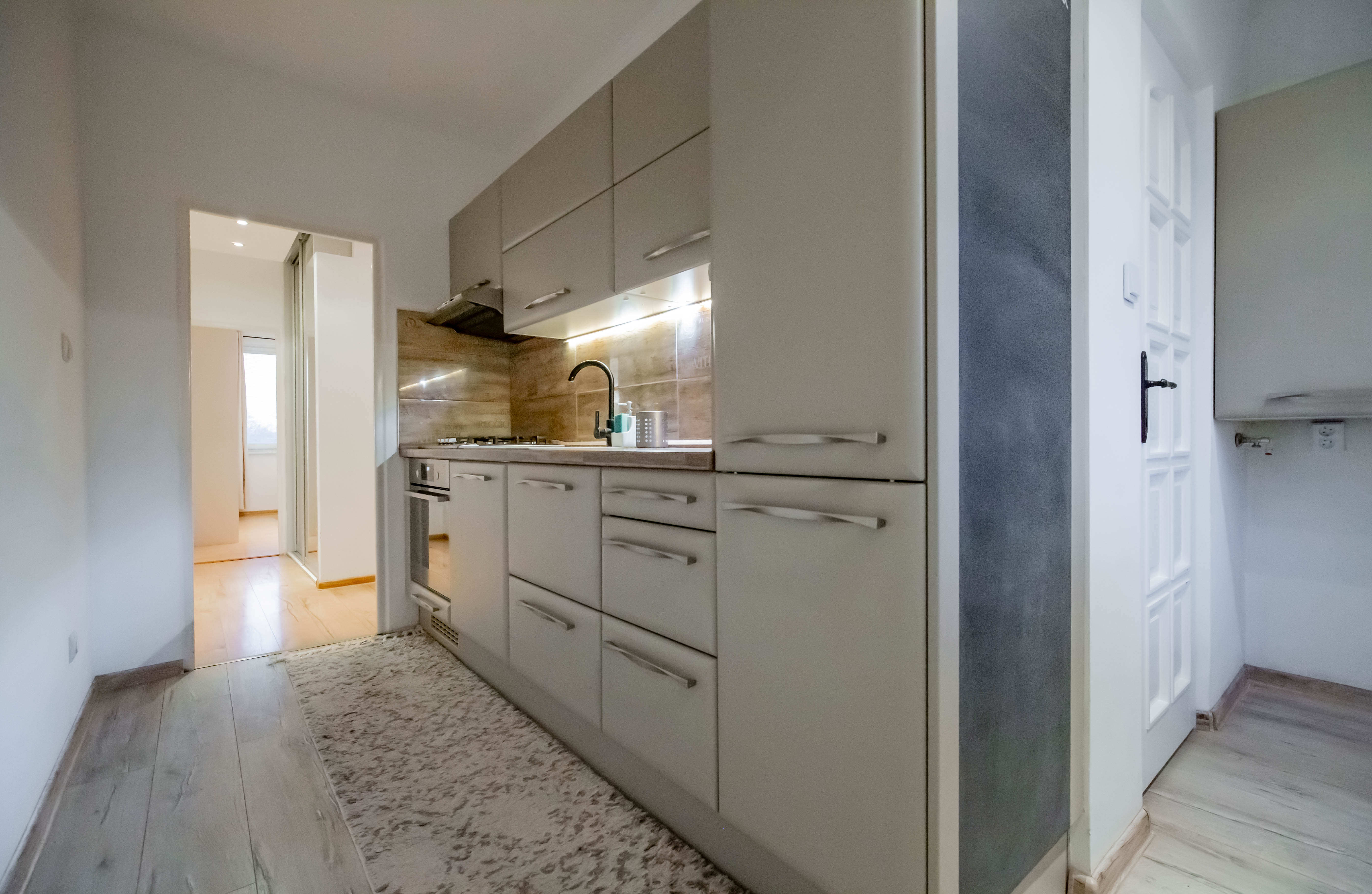 Dispozícia bytu: vstupná chodba, šatník, WC, kuchyňa, kúpeľňa s vaňou,